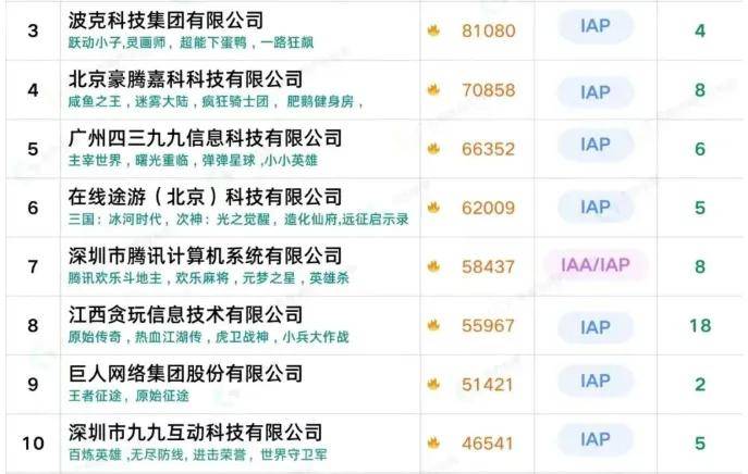 排名第8的贪玩的产品策略与很多家的不同,贪玩今年在小游戏侧上线款产品,是百强企业中发行数量第三多的企业,而且贪玩的传奇游戏在小游戏赛道取得了不错的表现。
