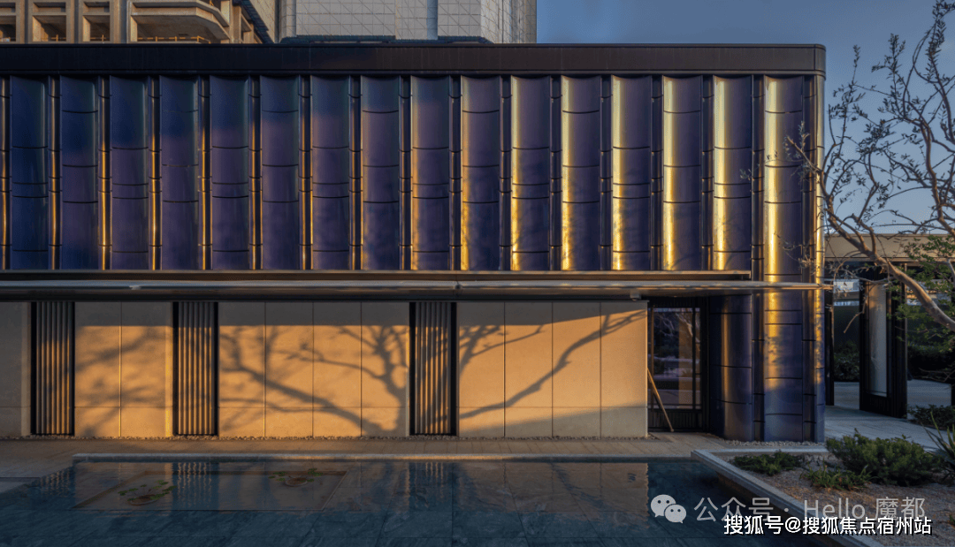 会所采用美学弧形玻璃+流光幻彩铝板,超高施工难度与成本,换来极具冲击力的未来感外观: