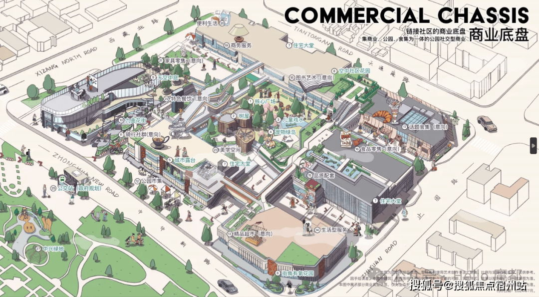 另外在社区的东南角和西侧,将通过街区设计与潮流商业的招募,打造类似上生新所般的时尚街区。