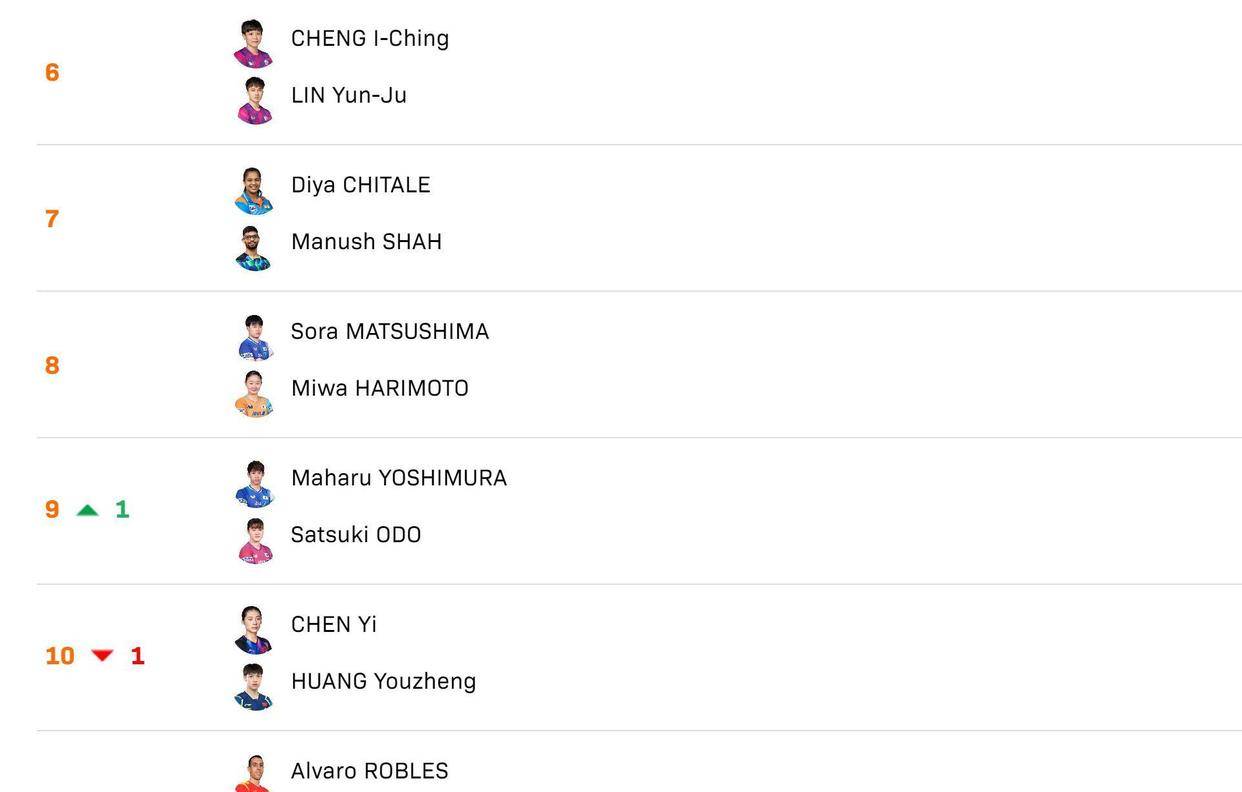 但问题来了,奥运名单一共就6个人。 如果想用满这两个混双名额,就得把这四个人全放进去,那剩下的两个名额,才能给其他单打高手,这选择可就太难了。 所以,现在世界排名的波动,已经不仅仅是面子问题,直接关系到奥运战略布局和宝贵的参赛名额了。